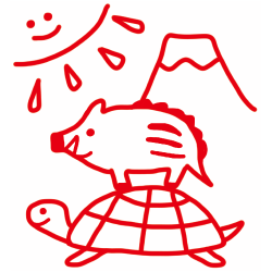 【浸透印】干支スタンプ(亥年)絵柄/17.イノシシと亀年賀状スタンプ(20×20mm)【ゴム印・スタンプ・イラスト】